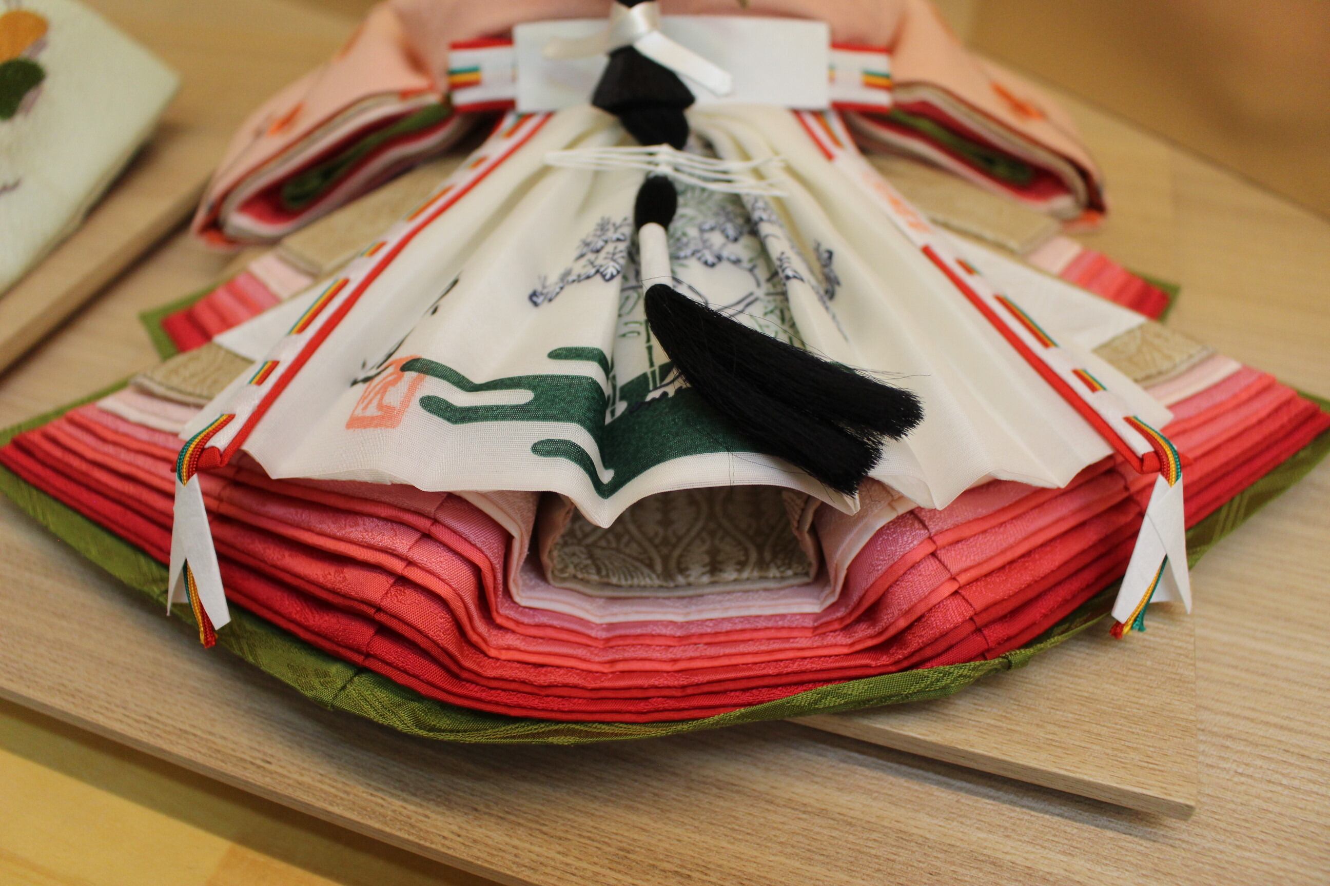 唐衣(からころも)には手刺繍・殿には松・姫には梅柄がほどこされています。