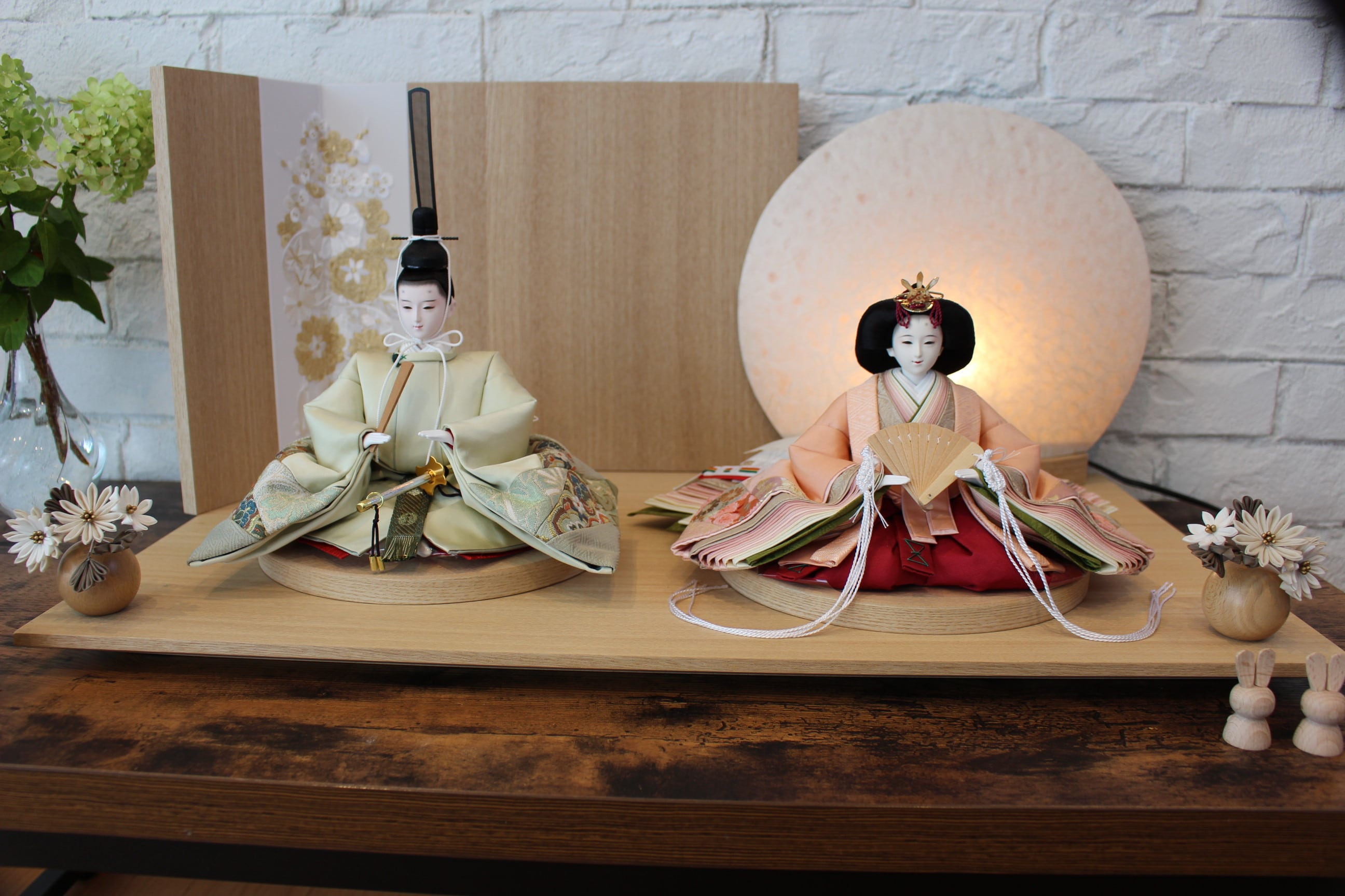 お雛様は手作りの為に、お衣装の柄の出方、お顔も一つ一つ手作りにて仕上がりが多少違う場合がございます。