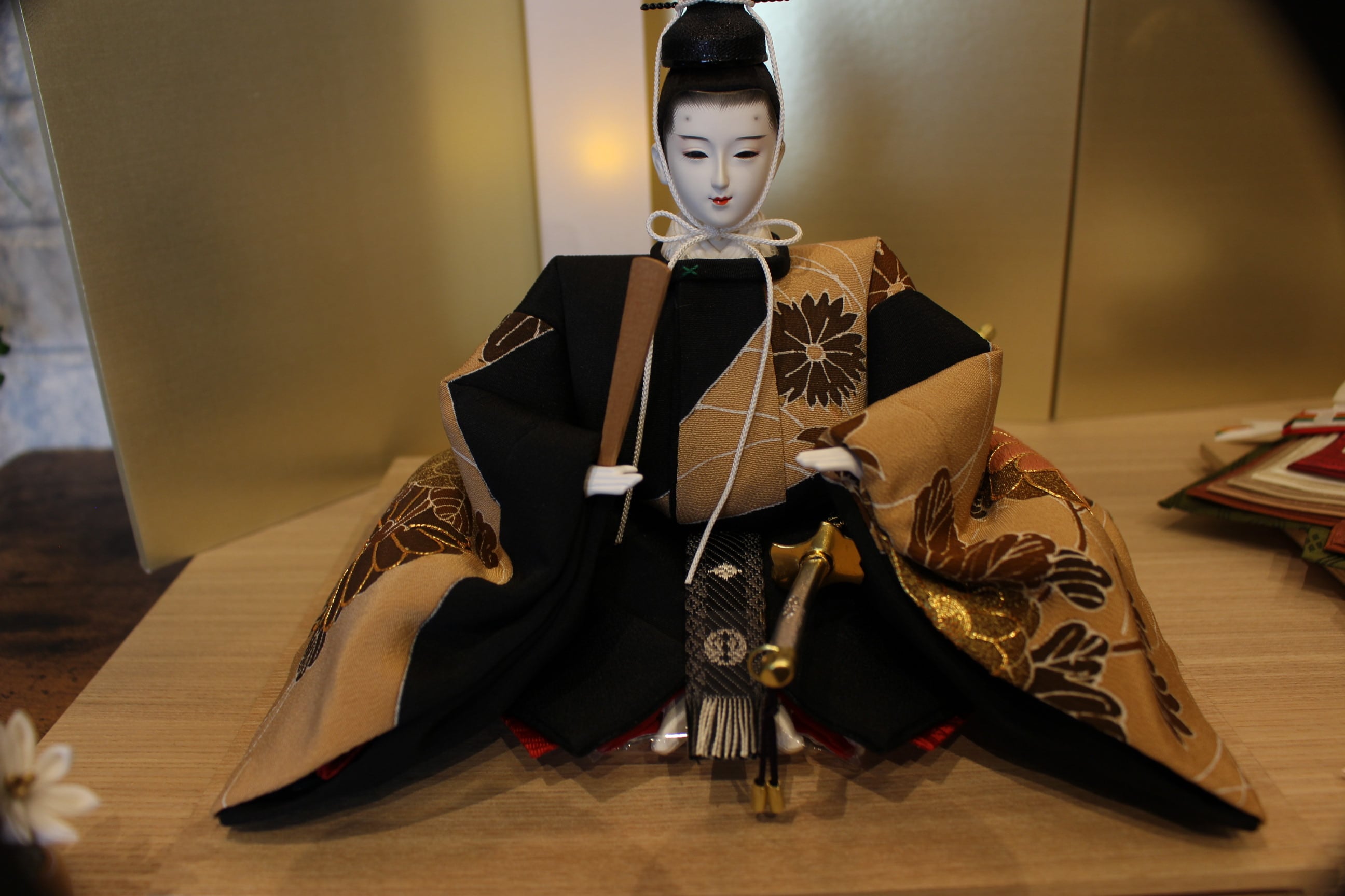 この限定一点物の親王は、圧倒的な品質と品格を持ち合わせており、特にそのお顔立ちは整った美しさを誇ります。細やかな顔の表情には、お化粧が施され、見る者の心をつかんで離しません。お雛さまの衣装には、人気のある吉祥柄が施されており、殿姫.菊に金駒で飾られています。健康と繁栄を祈願する意味を持っています。