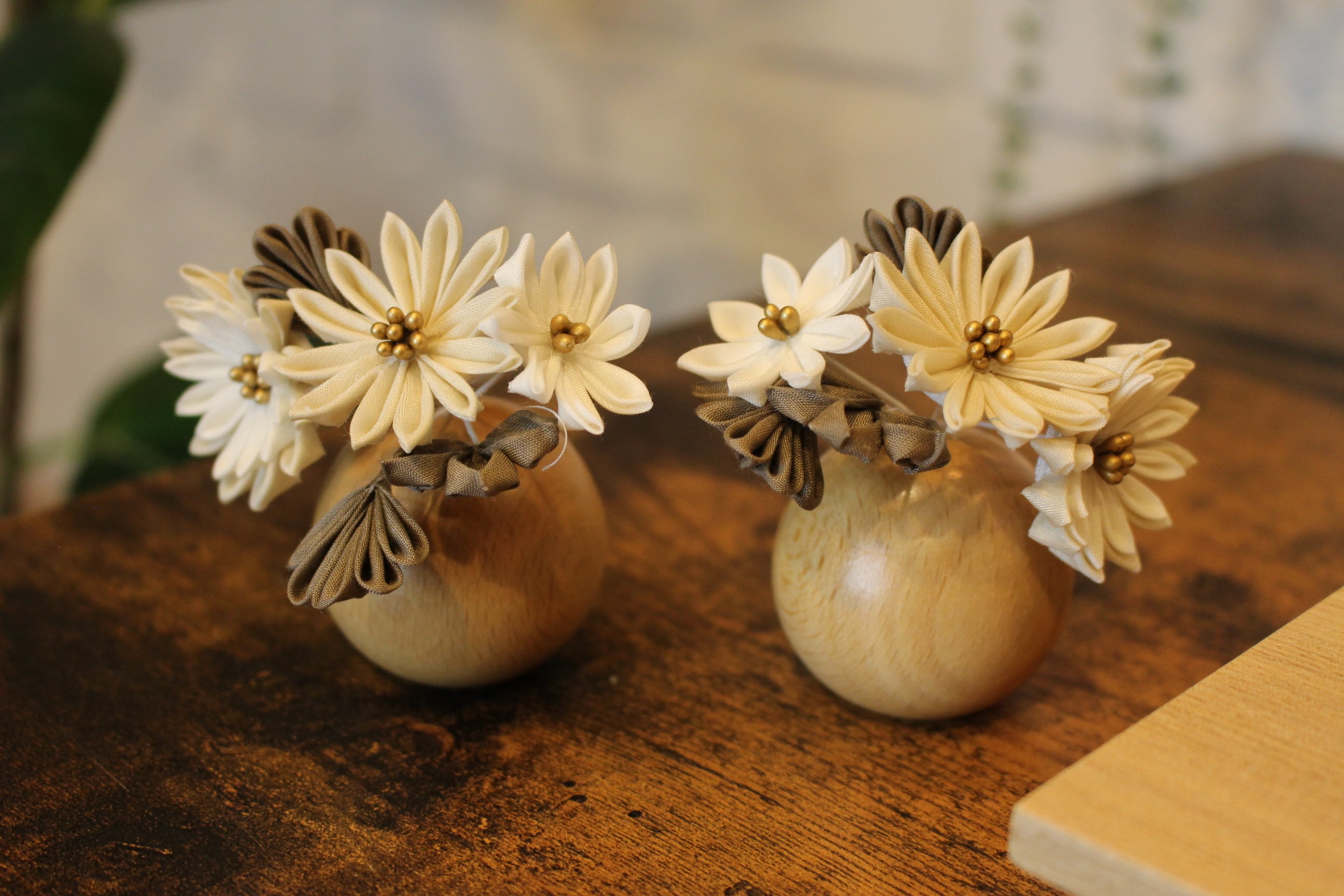 花飾:つまみ細工/剣桜/グレー