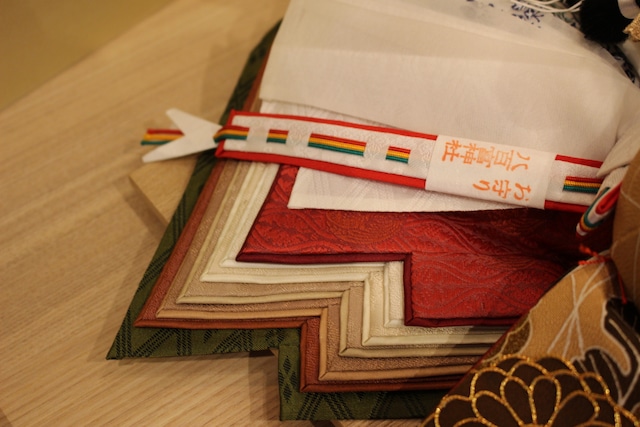 お雛さまを、わが子のように慈しみ、その優しさと美しさを未来へ繋げる。その思いを込めて、女の子の幸せを願いながら創り上げられた作品は、歴史的背景を持つ雛人形です。お衣装の生地は、丁寧に裏打ちされ、樹皮繊維の「こうぞ」を使用することで型崩れを防ぎ、百年後も美しさを保つよう配慮されています。