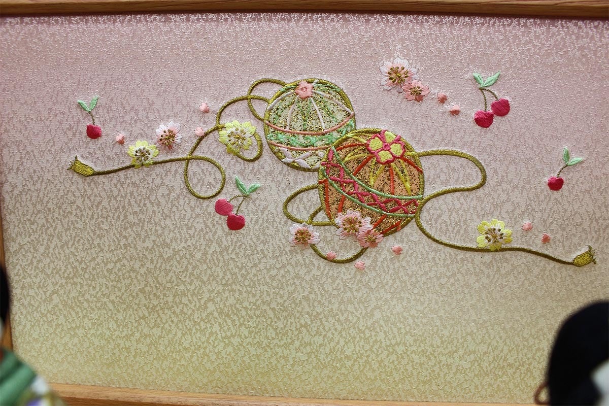 お屏風は、まりとサクランボ(花言葉:小さな恋人・上品