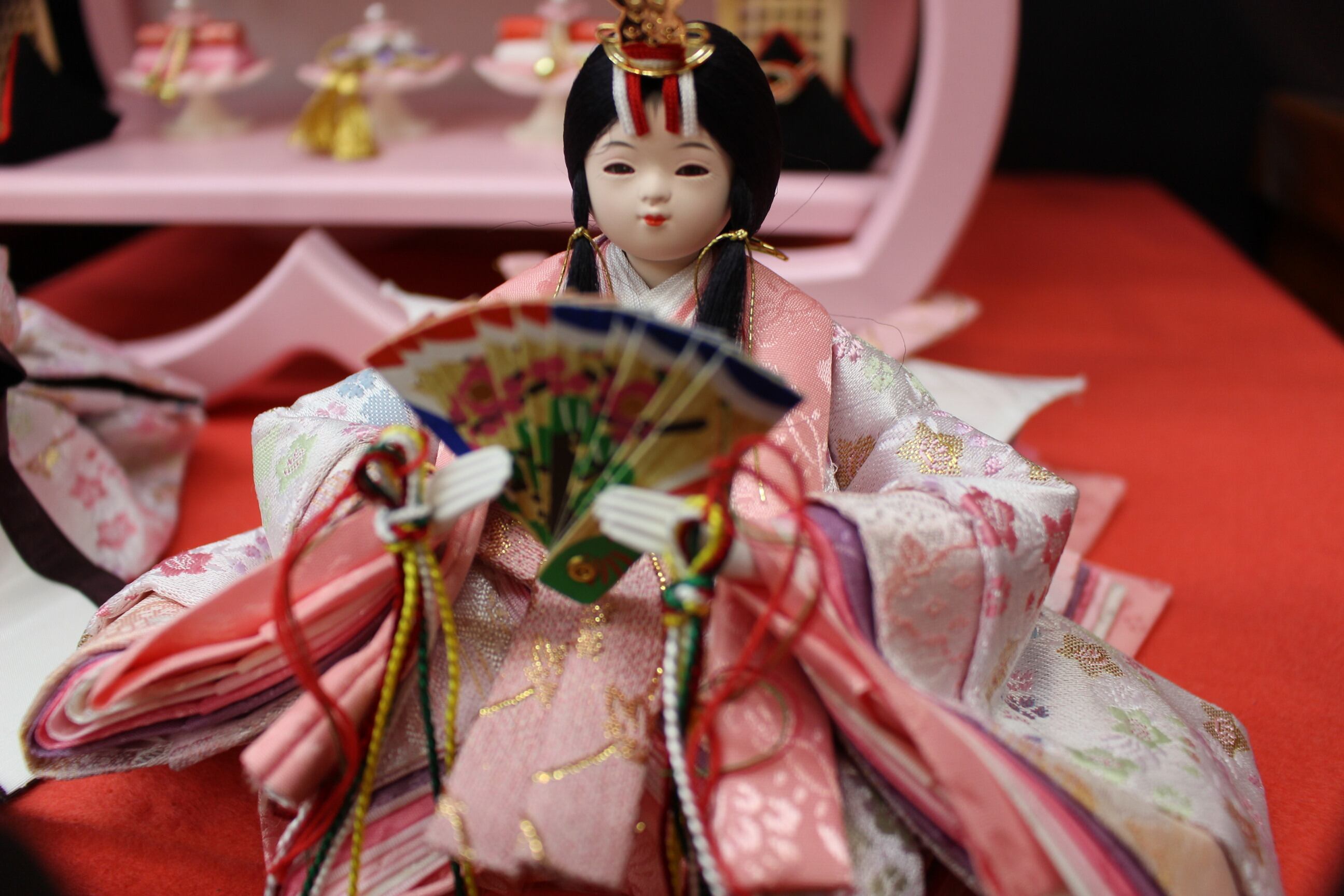桜型円形二段になり御屏風は桜の刺繍による花びらが