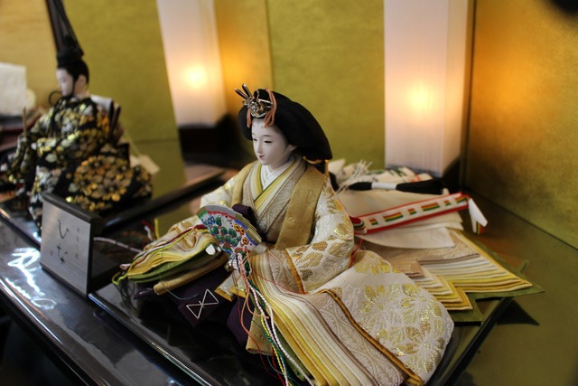 御姫様の五衣(かさね)は萌黄色が久遊作品の特徴・美しい仕立て