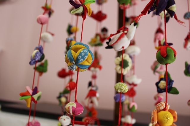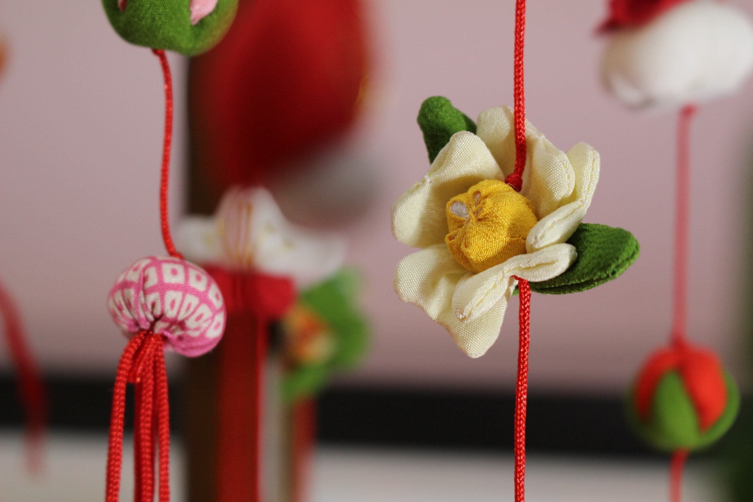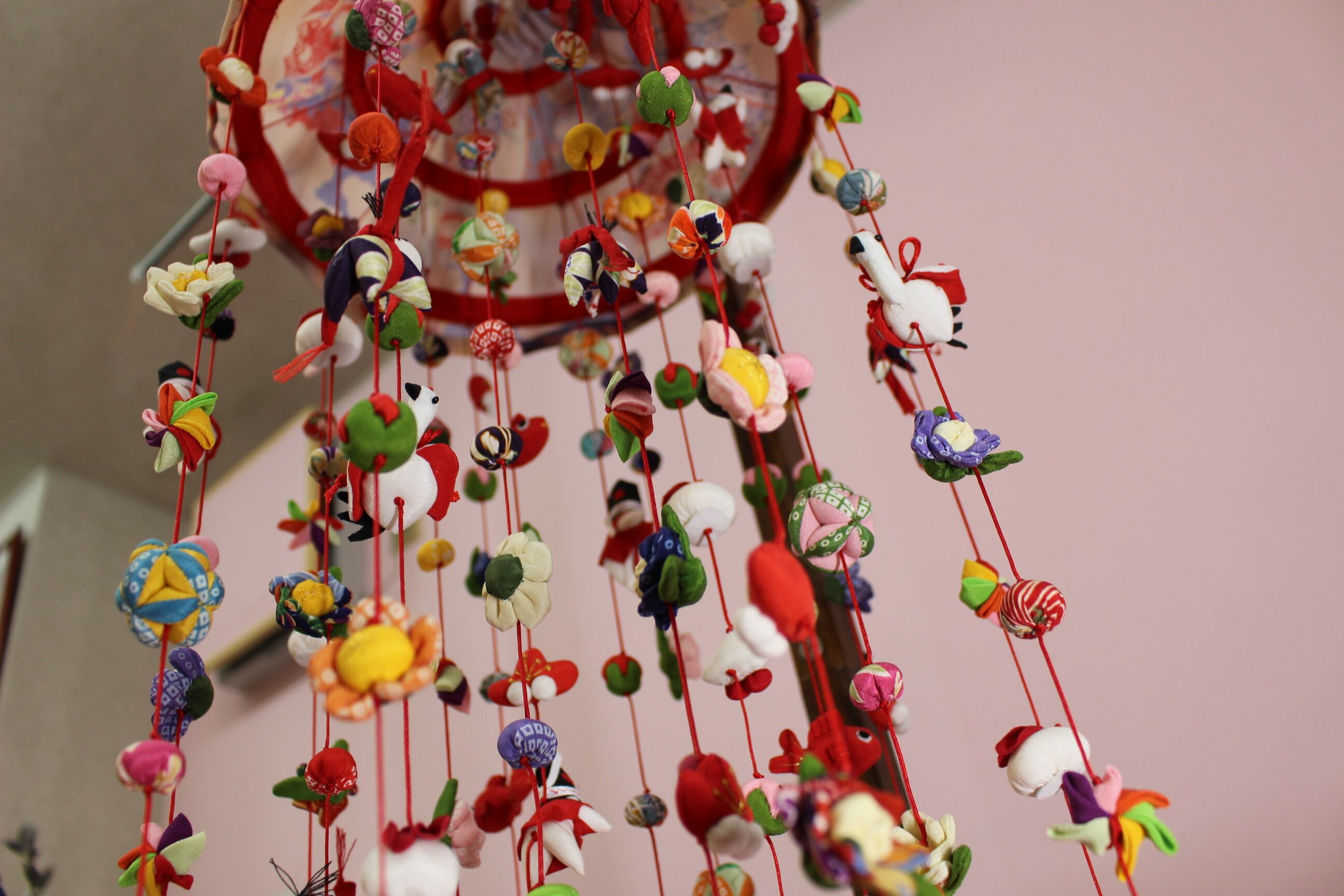 色とりどりの吊るし雛は春のお祝いにぴったりの仕上がりです。