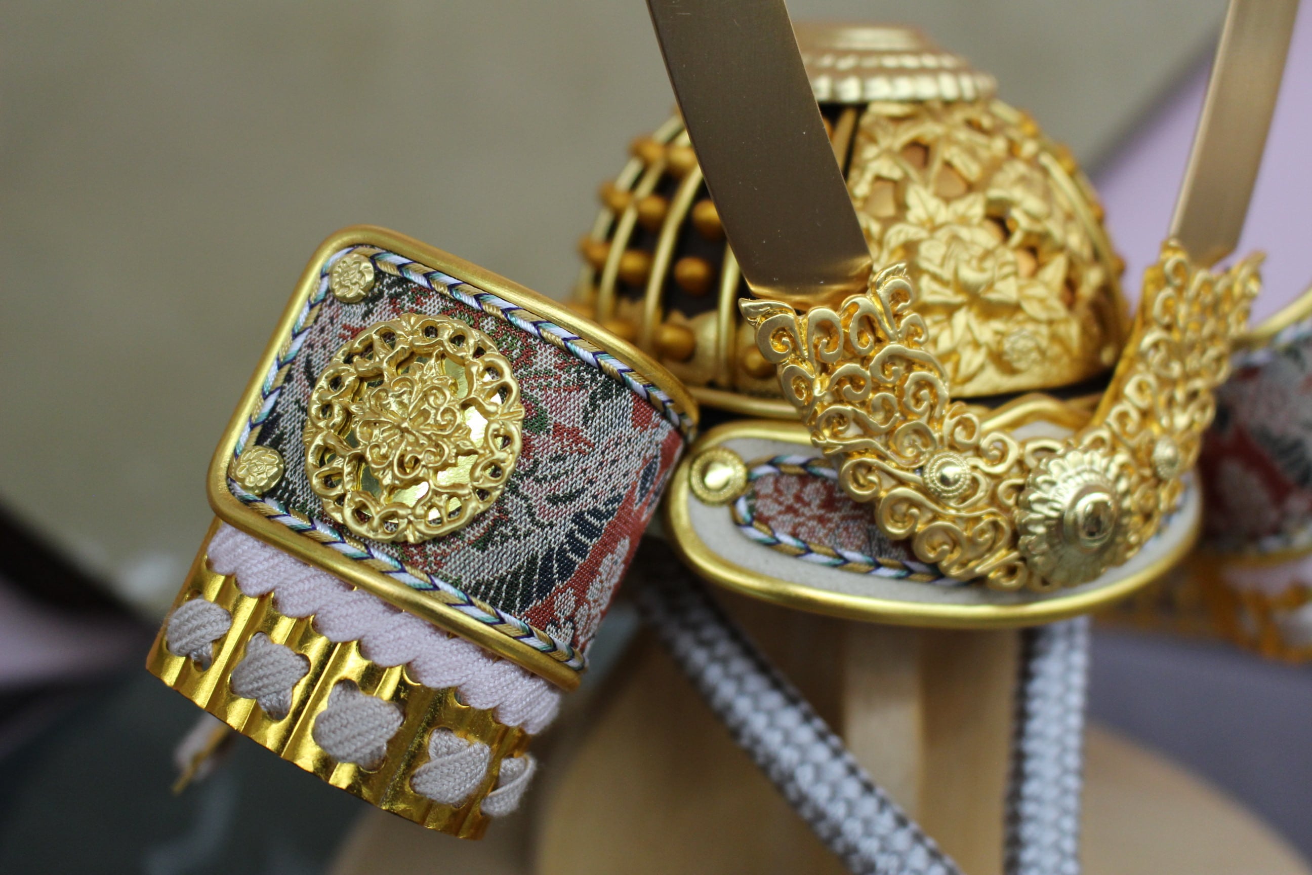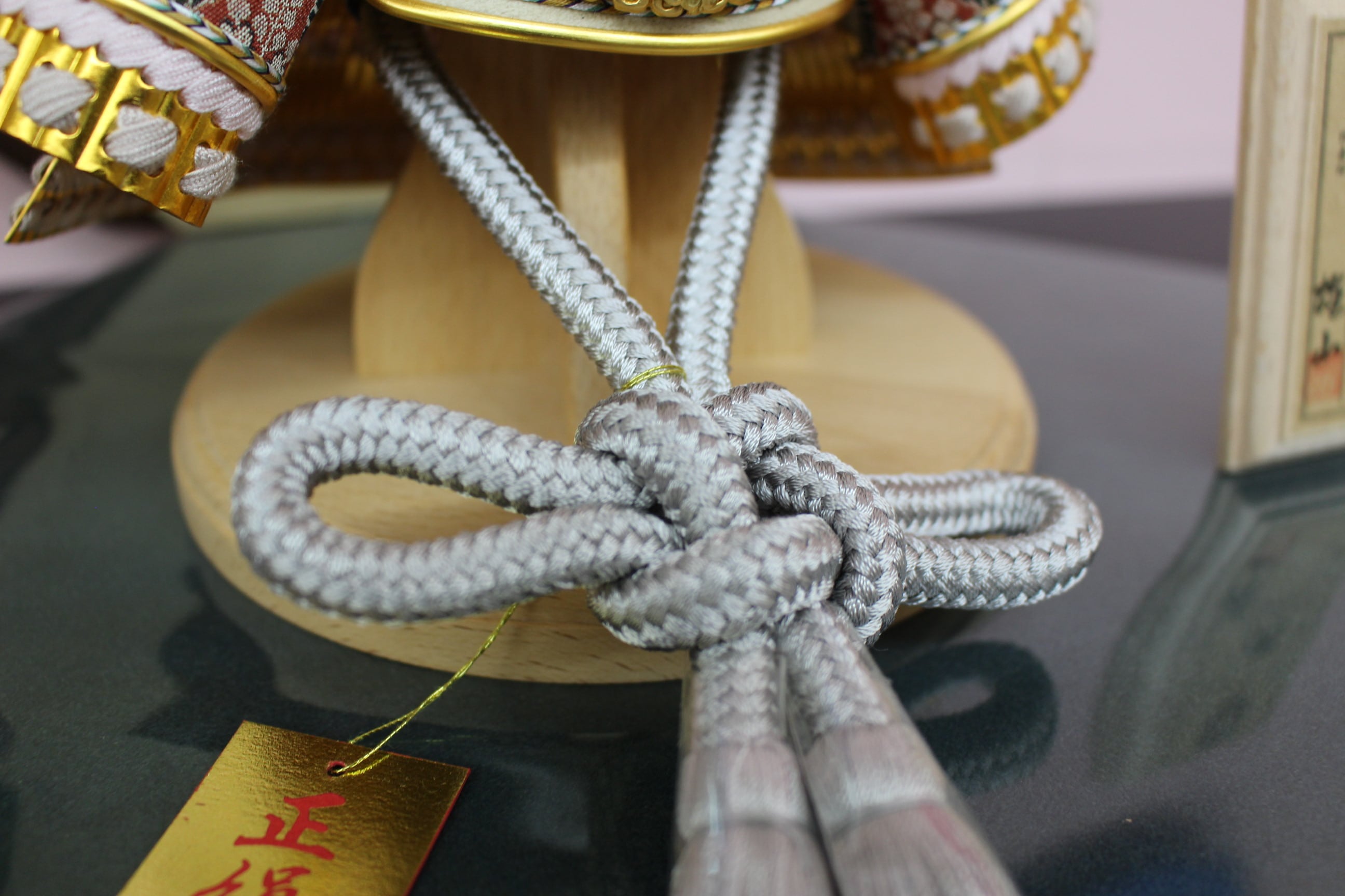 〈華〉はサーモンピンクの優しい色合いで威した兜飾りです。