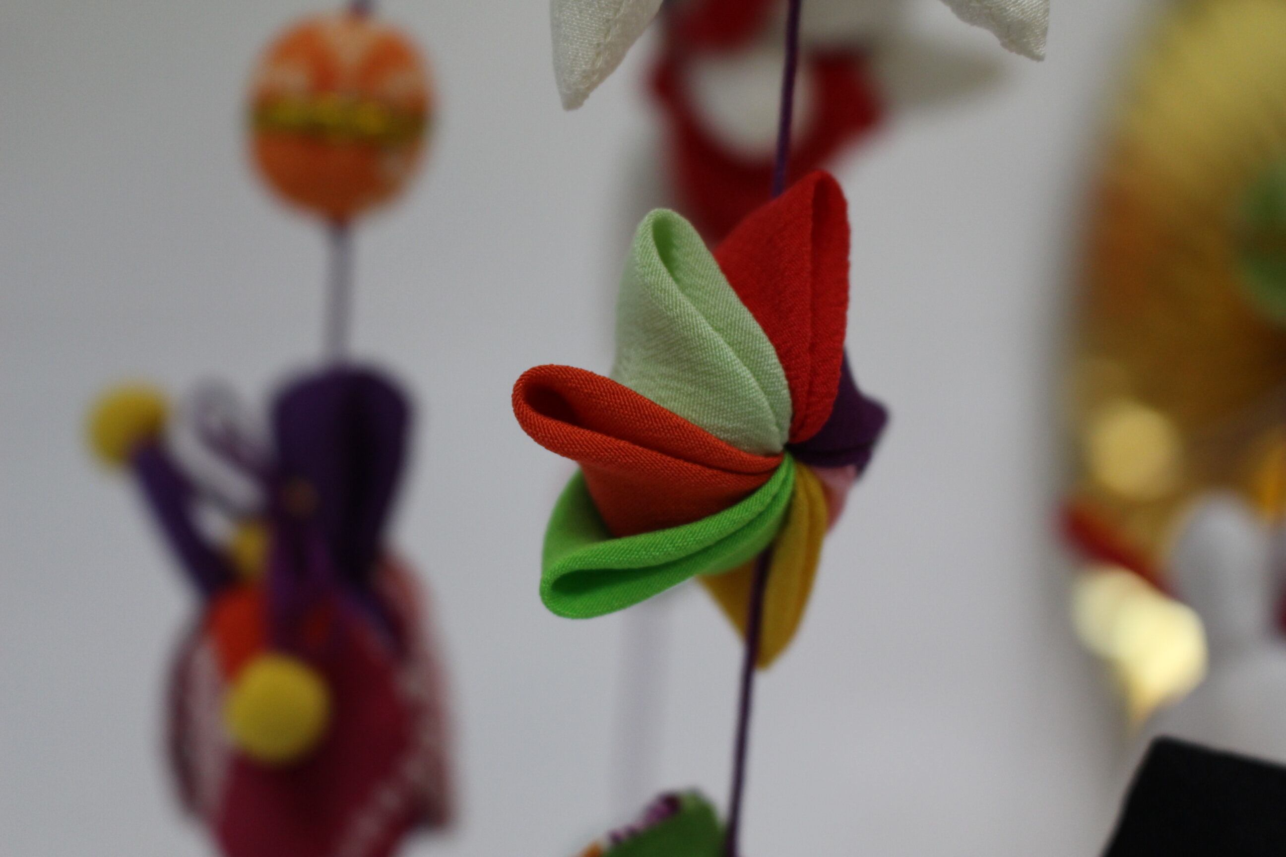色とりどりの吊るし雛は春のお祝いにぴったりの仕上がりです。