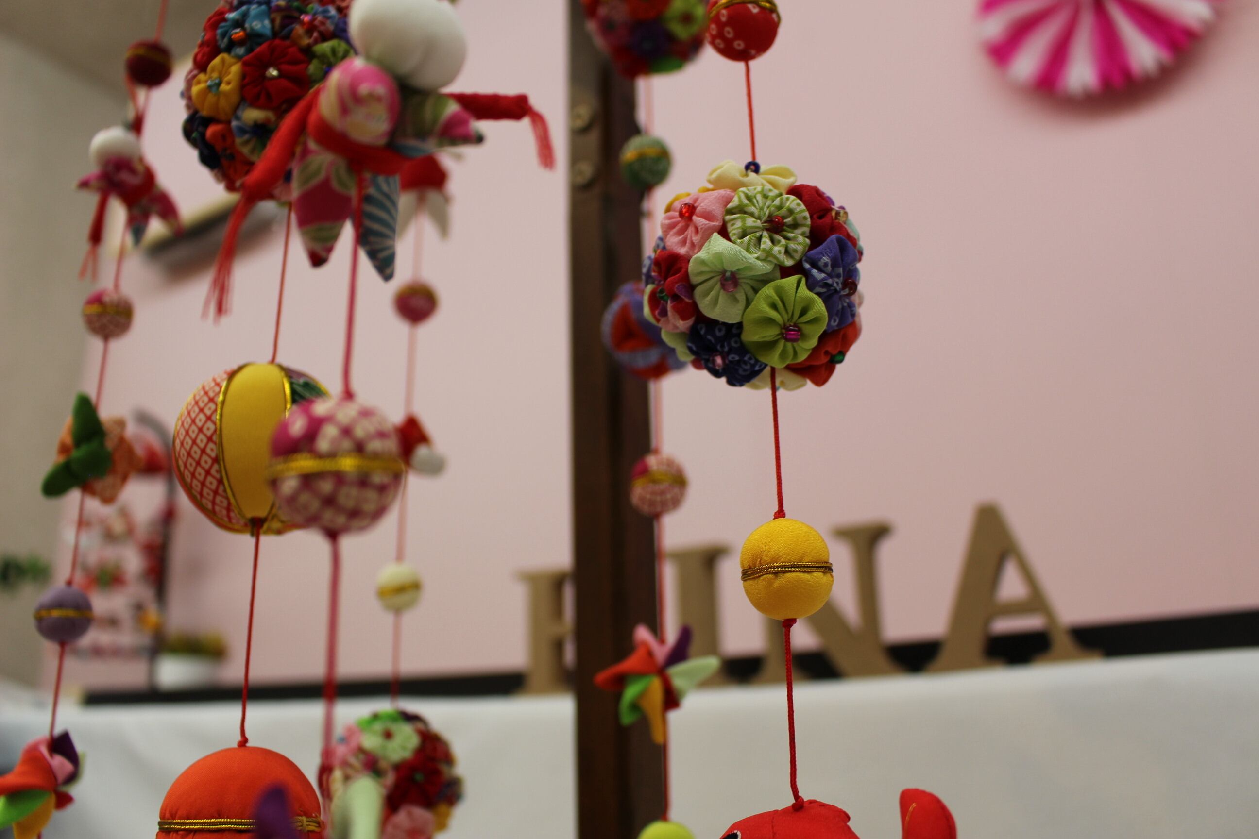 色とりどりの吊るし雛は春のお祝いにぴったりの仕上がりです。
