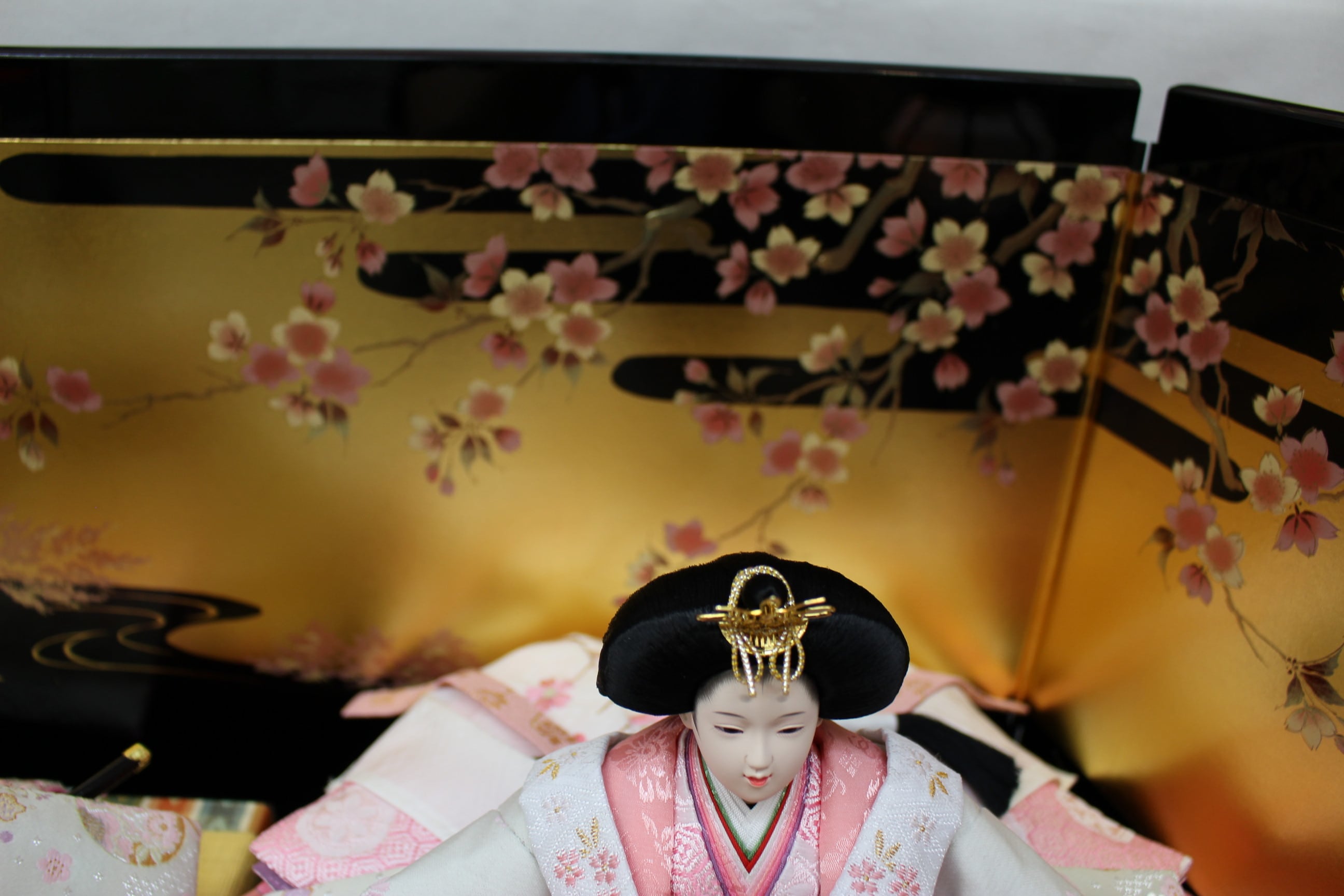 雛人形 親王飾り「白花鞠桜」手描き本金蒔絵収納