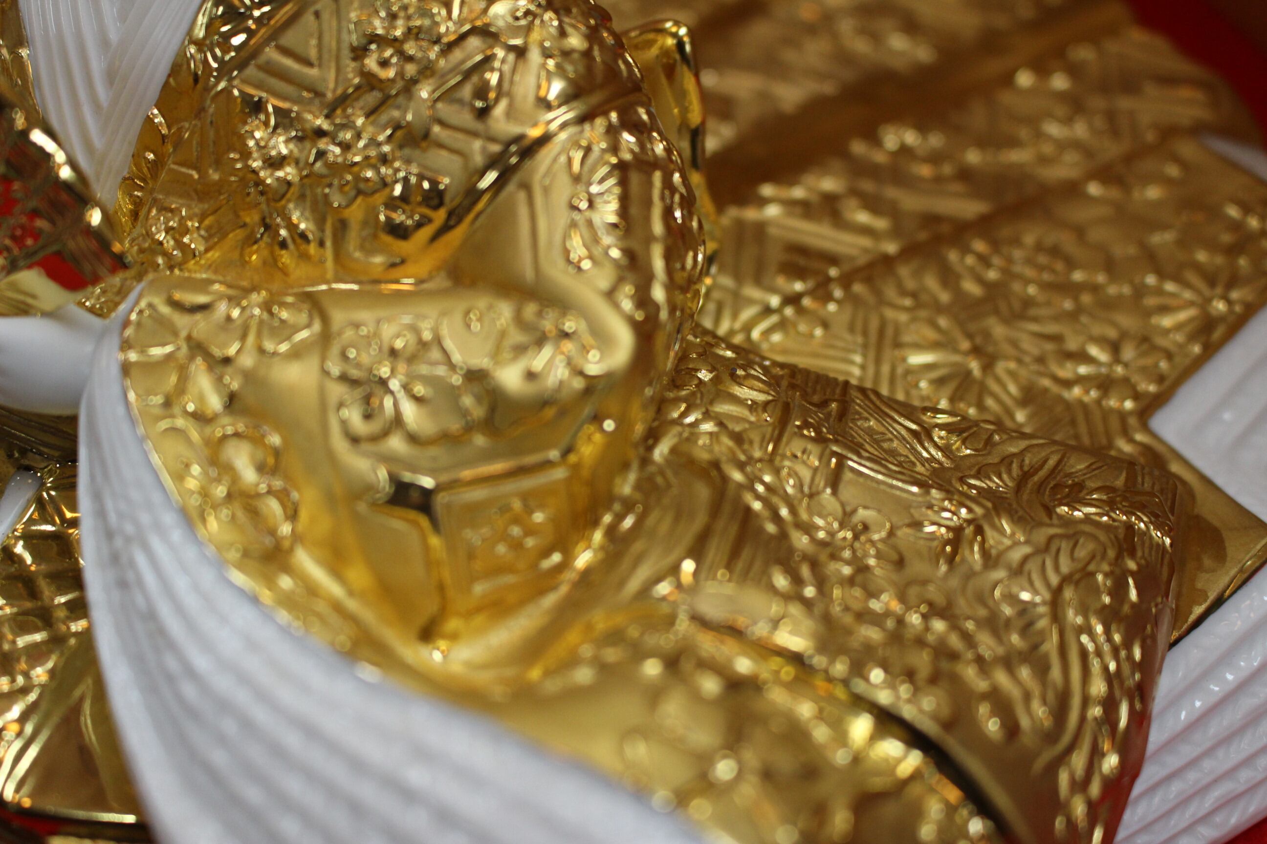 ポーセリン おひな様(黄金色)ドイツ製.純金彩色.日皇塑像(黄金)
