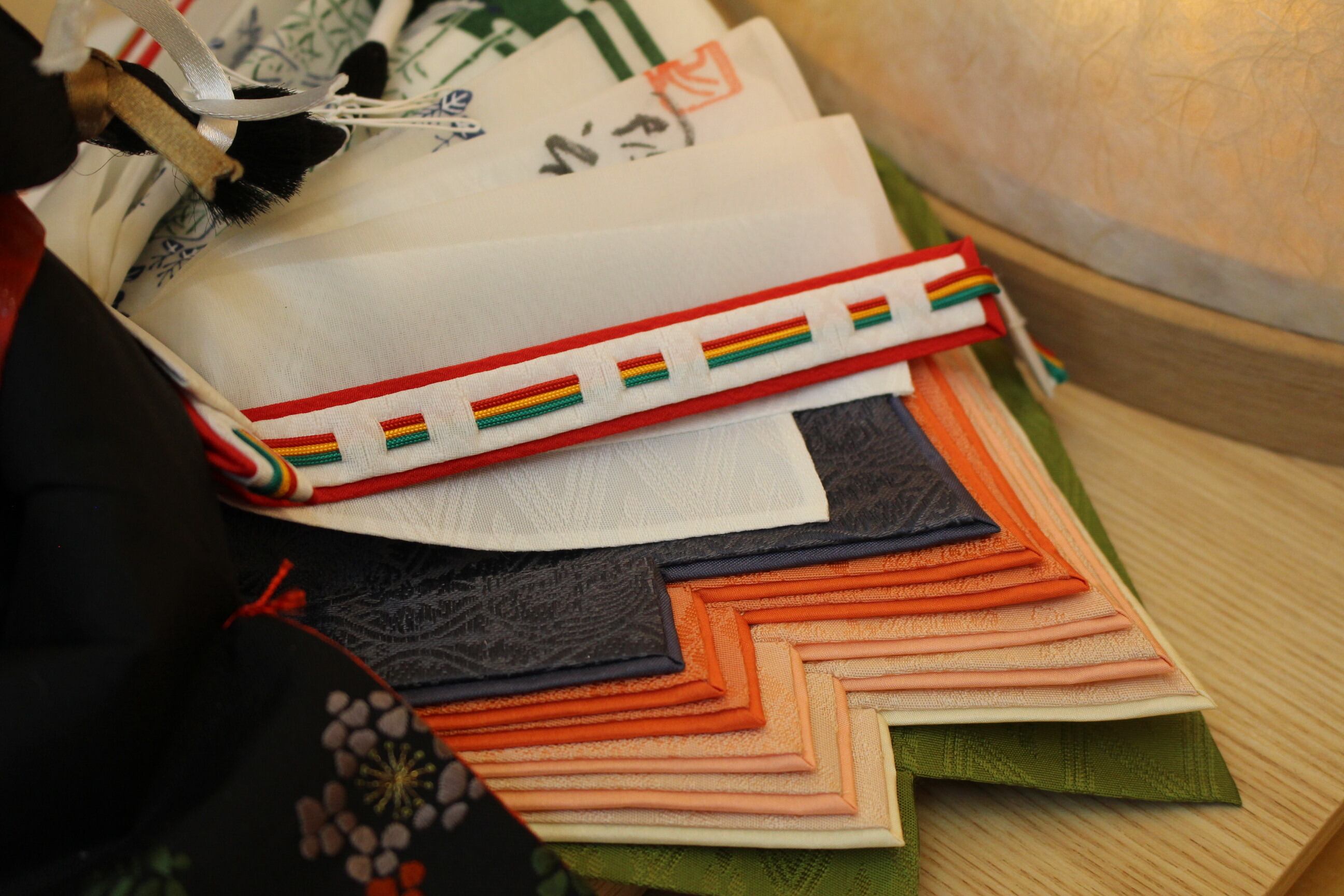 衣装の素材には余念がなく生地の裏打ちには、和紙でも耐久性に富む樹皮繊維の「こうぞ」を使用し型崩れせず